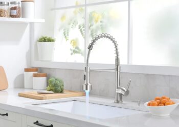Upgrade your kitchen with the GIMILI Kitchen Faucet! Its sleek design, two function sprayer, and easy operation make clean-up a ...